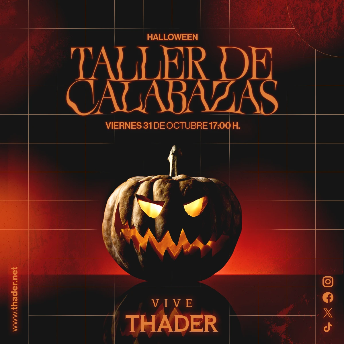 Este viernes 31 de octubre, ven a celebrar Halloween en Thader con una actividad tan creativa como divertida: nuestro Taller de Calabazas.