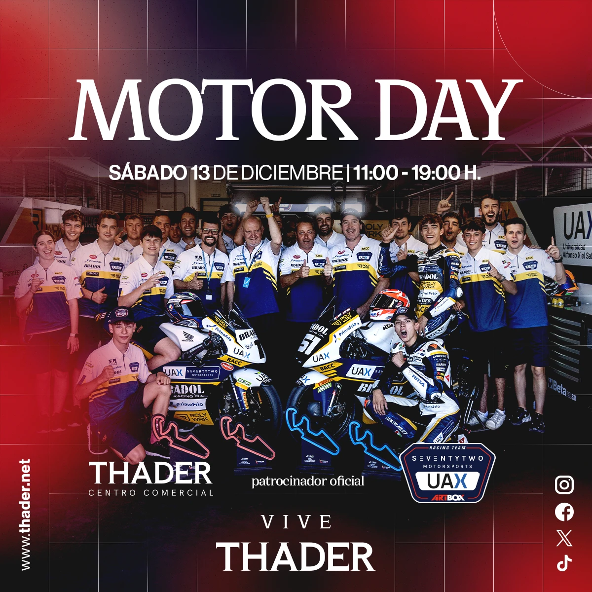 El rugido de los motores llega a Thader con Motor Day, un evento único junto al equipo UAX SeventyTwo Artbox.