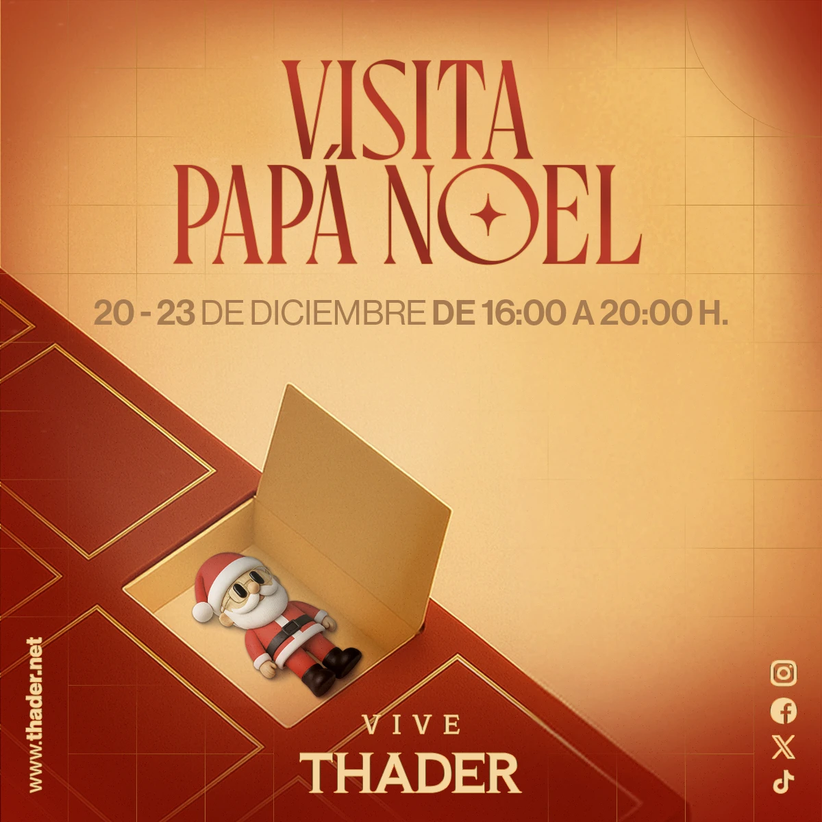 Papá Noel llega a Thader del 20 al 23 de diciembre, de 16:00 a 20:00 h, para recibir a todos los niños y niñas que quieran contarle sus deseos navideños.