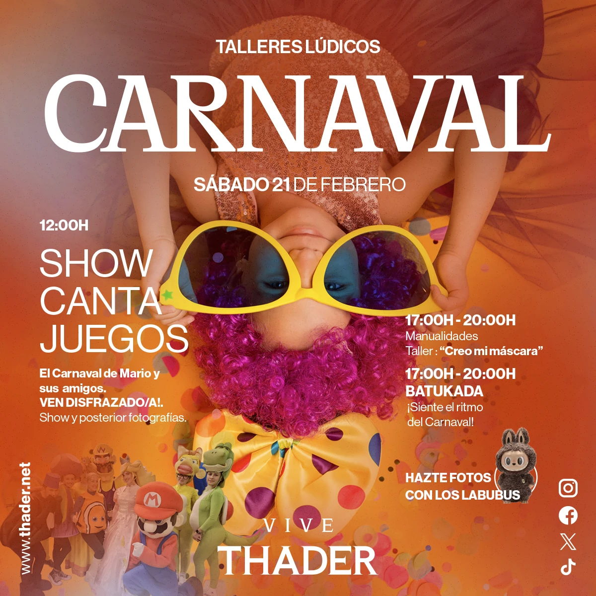 El sábado 21 de febrero estará dedicado al Carnaval, con actividades a lo largo de toda la jornada.