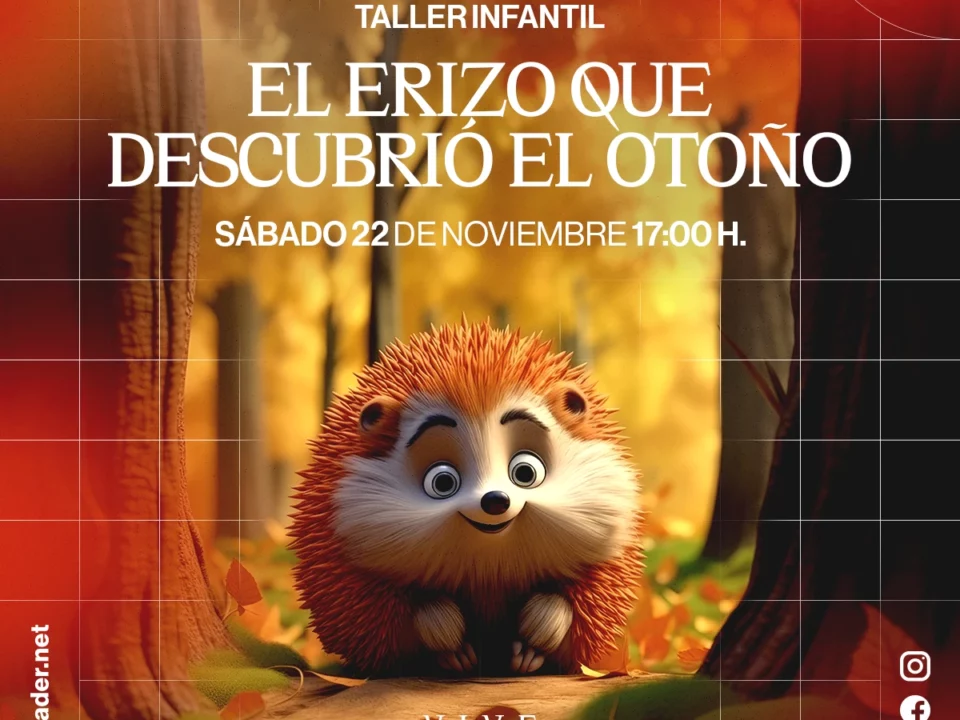 Este otoño, los más pequeños tienen una cita muy especial en Thader. En esta divertida actividad conocerán la historia de un curioso erizo que descubre por primera vez los colores, olores y secretos del otoño.